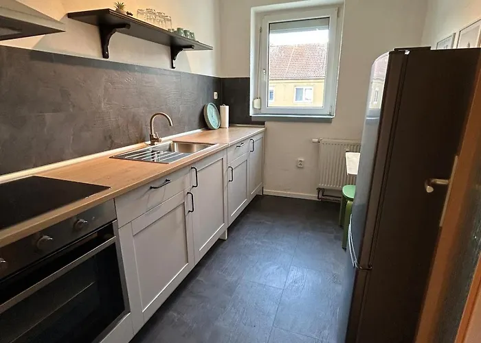 There is a fridge and an oven in an equipped kitchen. Monteurwohnung I Wi-Fi I Naehe Boxberg & Schwarze Pumpe apartment is within easy reach of the nearest bus stop Neustaedter Strasse.